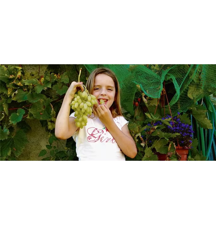 Gelbe kernlose Traube aus dem Hause Häberli®. Vorzügliches Aroma und gute Süsse. Sehr grosse, ovale Beeren mit knackigem Fruchtfleisch und zarter Schale zeichnen TONIA® als Rebe für verwöhnte Geniesser aus. Am geschützten Rebspalier an der Hauswand und bei lockerem Aufbau ist sie wenig krankheitsanfällig und bildet ein kräftiges Gerüst mit grossen Blättern. Benötigt langen Schnitt. Exklusiv bei Häberli®.