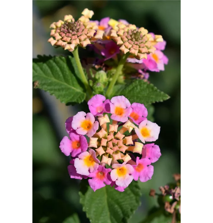 Das Wandelröschen (Lantana camara) ist eine beliebte, pflegeleichte Pflanze für den Balkon, die während der gesamten Saison unzählige orangegelbe, angenehm duftende Blüten bildet. Ein heller Standort und ein durchlässiges Substrat werden bevorzugt.