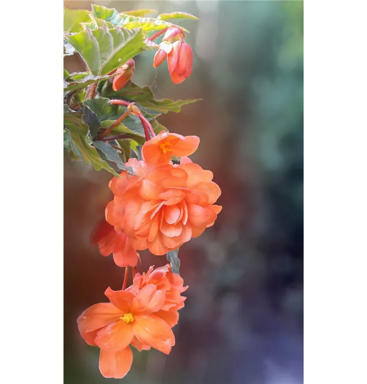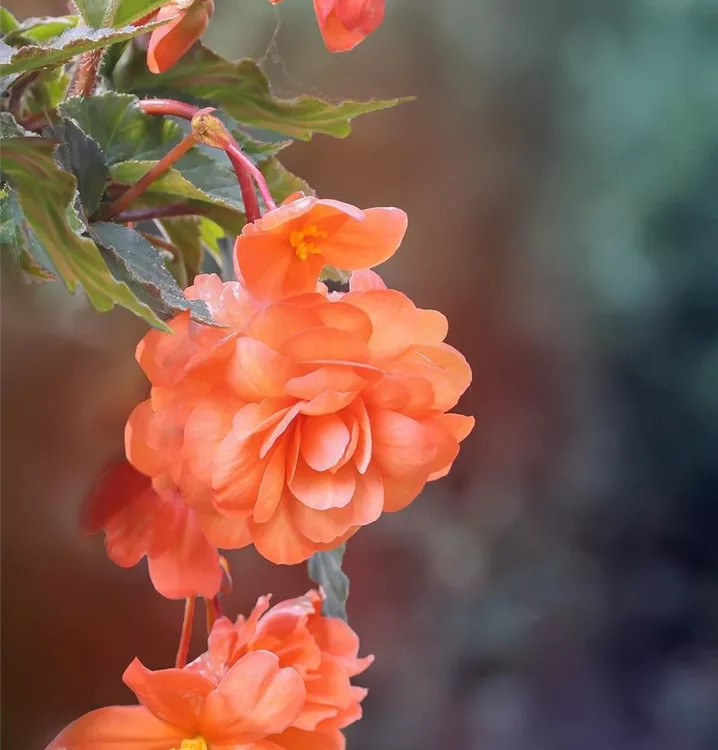 Die Knollenbegonie (Begonia x tuberhybrida) bringt ansehnliche, gelbe, orangefarbene, rosafarbene, rote, weiße, gefüllte Blüten von Juni bis November hervor. Bevorzugt wird ein durchlässiger, nährstoffreicher Boden in halbschattiger Lage. Die buschige Pflanze erreicht gewöhnlich eine Höhe von 20 - 30 cm und wird bis zu 30 cm breit.