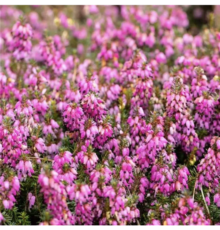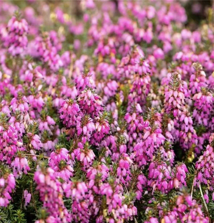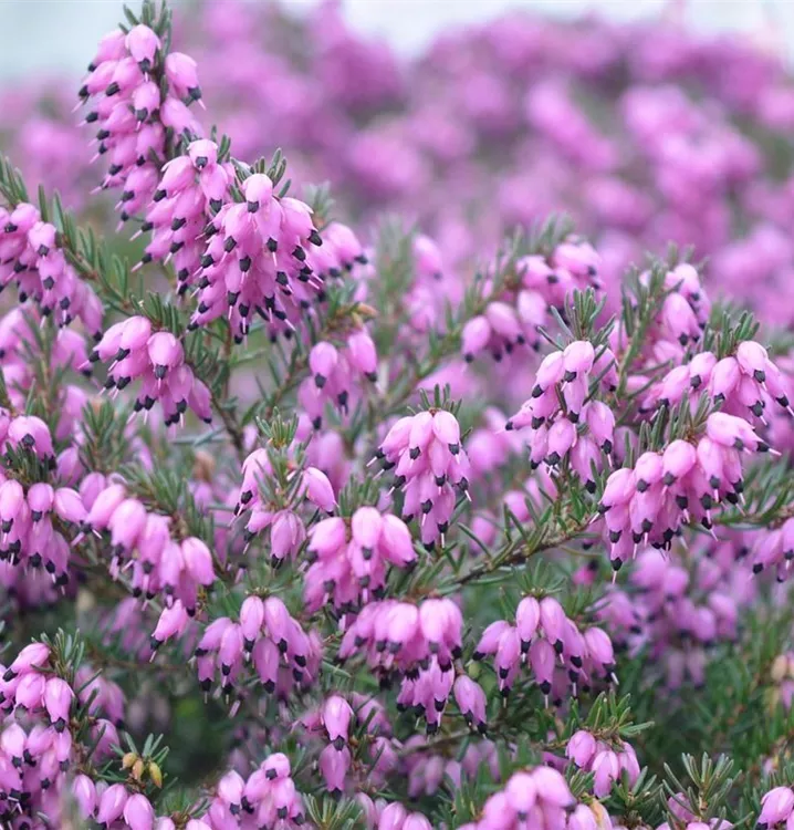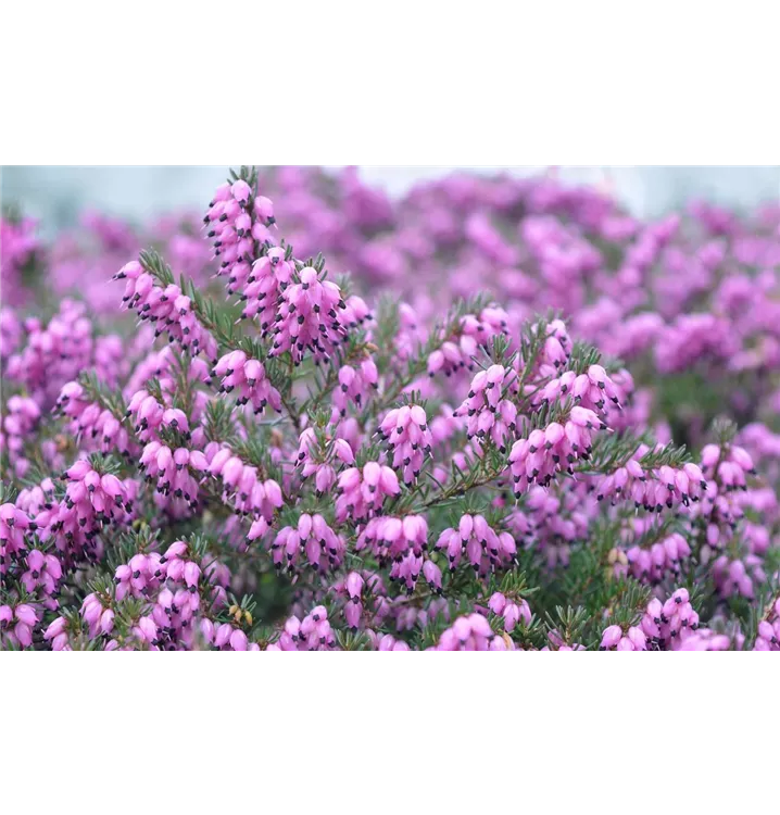Die Schneeheide (Erica carnea) wird durch ihre unzähligen röhrenförmigen Blüten in Rosa jeden Garten verschönern. Ab Februar ist es soweit und sie begeistert in Beeten, sowie in Kübeln auf Balkon oder Terrasse. Die nadelförmigen, dunkelgrünen Blätter sind ebenso ein schöner Anblick.