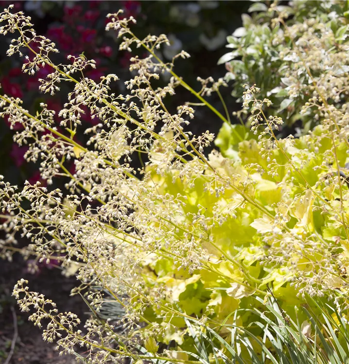 Das Purpurglöckchen (Heuchera) ist eine buschige, wintergrüne Staude mit dekorativen Blättern. An einem sonnigen bis halbschattigen Standort mit durchlässigem, nährstoffreichem Boden erreicht es gewöhnlich eine Höhe von ca. 50 cm und wird ca. 40 cm breit. Das Purpurglöckchen ist gut frostverträglich.
