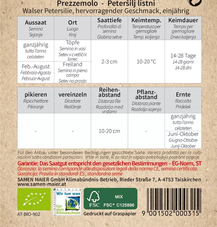 BIO Petersilie, Walser Petersilie