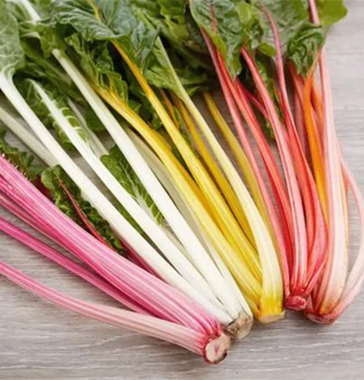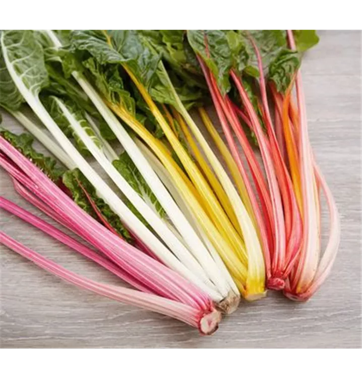 Mangold „Rainbow“ ist eine farbenfrohe Sorte mit bunten Stielen in Gelb, Rot, Orange und Pink sowie zarten, dunkelgrünen Blättern. Er ist ertragreich, pflegeleicht und bringt sowohl Geschmack als auch dekorative Vielfalt ins Beet und in die Küche.