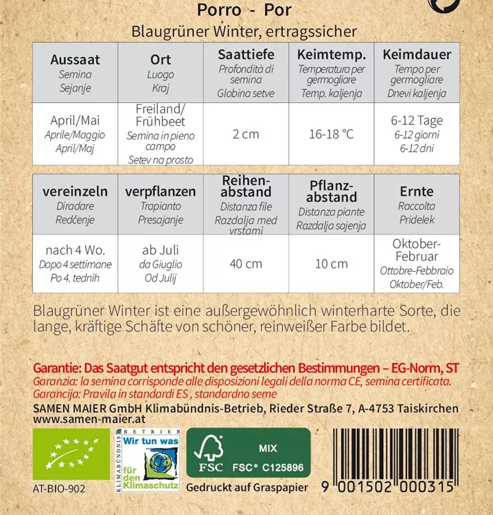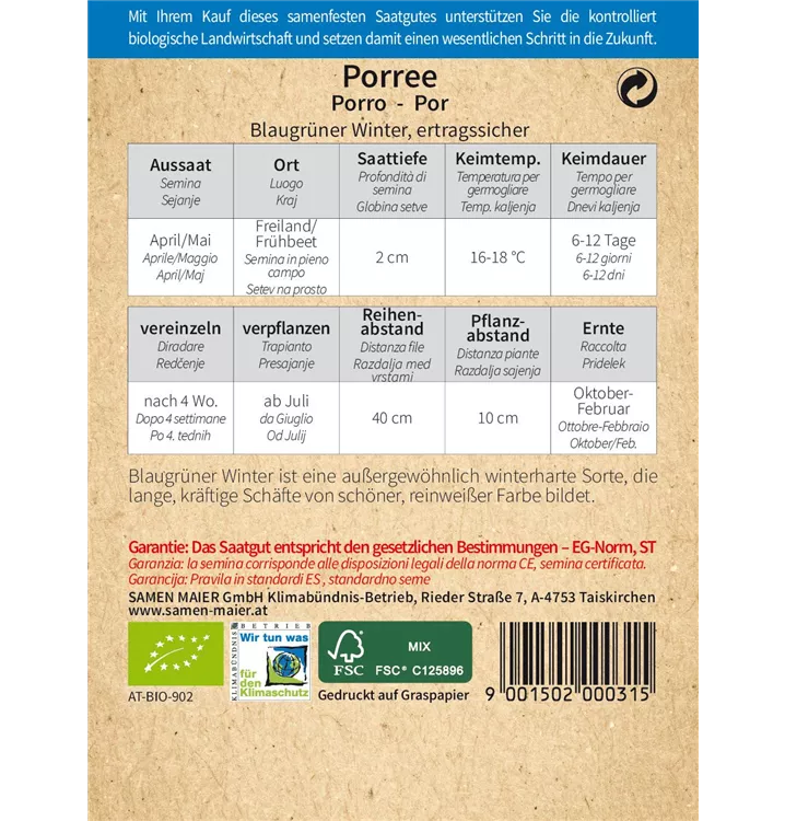 BIO Porree, Blaugrüner Winter