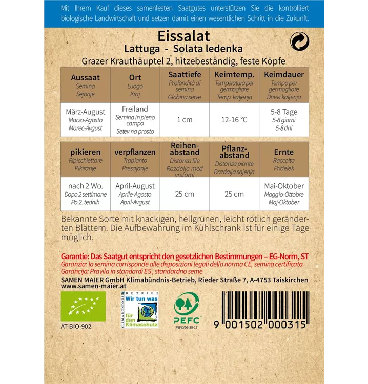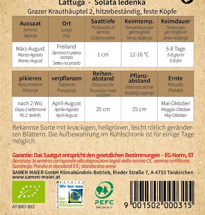 Bekannte Sorte mit knackigen, hellgrünen, leicht rötlich geränderten Blättern. Die Aufbewahrung im Kühlschrank ist für einige Tage möglich.