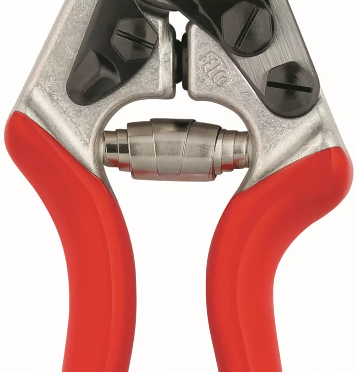 Jedes Merkmal der FELCO 6 trägt zu ihrem hohen Bedienkomfort bei allen Schneidarbeiten bei. Wenn Sie sie in die Hand nehmen, fühlen Sie die kompakte Leichtigkeit der Baumschere und gleichzeitig die robuste Schneidkraft der Klingen aus gehärtetem Qualitätsstahl. Darüber hinaus wird ihre solide Funktionalität durch den aus einem Stück geschmiedeten Aluminiumgriff noch erhöht. Für noch mehr Ergonomie bildet der abgewinkelte Schneidkopf eine natürliche Verlängerung der Hand, und die Gummi-Stoßdämpfer bewirken eine sanfte Schließbewegung, um das Handgelenk zu schonen. Durch den mikrometergenauen Einstellmechanismus lässt sich der Schneidkopf ganz einfach anpassen, damit die Baumschere mit der Präzision eines Skalpells verwendet werden kann, welche charakteristisch für die FELCO-Schneidewerkzeuge ist und sie so unentbehrlich macht.