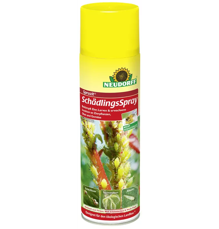Anwendungsfertiges Pflanzenspray mit den natürlichen Wirkstoffen zur Bekämpfung aller bedeutenden Schädlinge an Zimmer- und Zierpflanzen. Wirkt gegen Blattläuse, Schild-, Woll- und Schmierläuse, Spinnmilben, Weißen Fliegen, Thripse und Zikaden. Bekämpft sowohl die ausgewachsenen Insekten als auch deren Larven und Eier. Gut pflanzenverträglich und nicht bienengefährlich (in D: NB 6641). Zugelassen für den ökologischen Landbau, lt. EG-Verordnung.