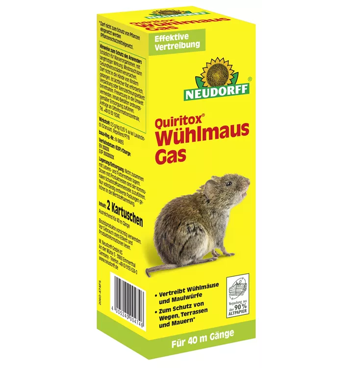 Fernhaltemittel gegen Wühlmäuse und Maulwürfe. Vertreibt die Tiere effektiv von Wegen, Terrassen und Mauern, ohne sie zu schädigen. Mit Duftstoffen, die durch das Entzünden der Rauchkartuschen freigesetzt werden.