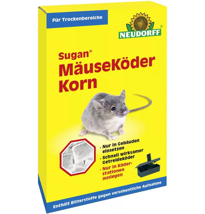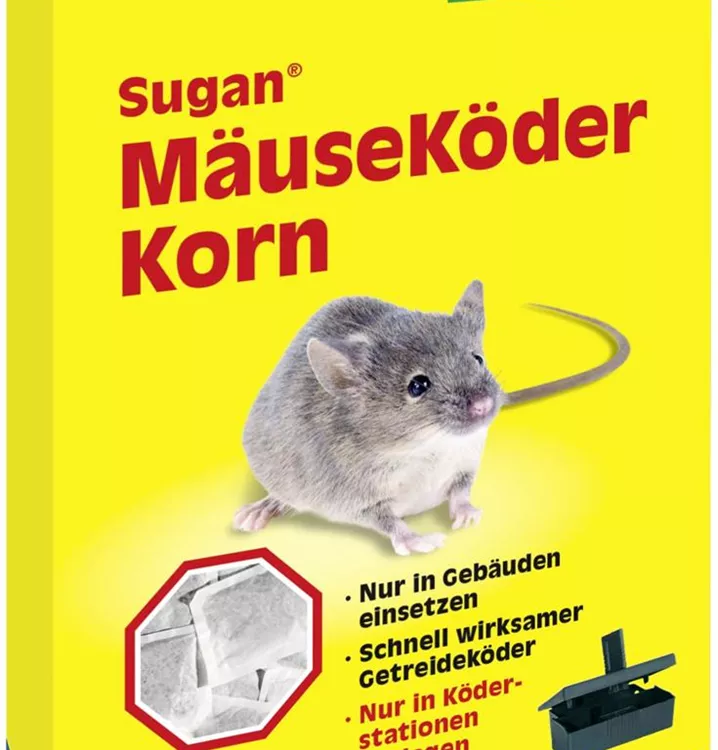Der Köder darf nur in geschlossenen Räumen eingesetzt werden. Er muss in einer Köderbox (Sugan MäuseKöderbox) ausgelegt werden. Die Köderbox muss so aufgestellt werden, dass Kinder und Haustiere sie nicht erreichen können.