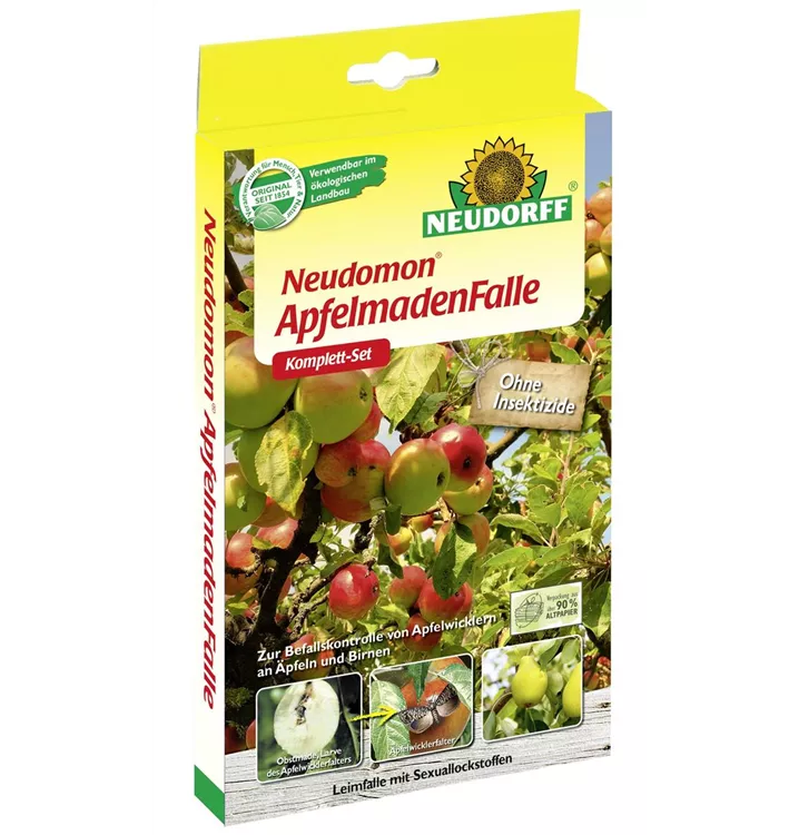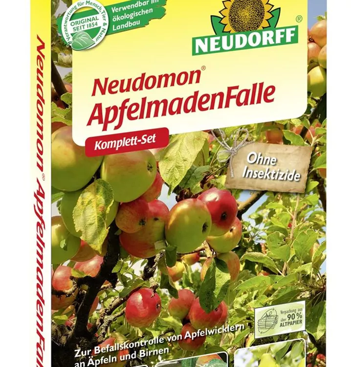 Biotechnische Lockstoff-Falle zur Minderung des Befalls von Apfelmaden und Apfelwicklern. Insektizidfreier Spezialleim mit natürlichen Inhaltsstoffen. Auch für die Ermittlung des günstigsten Spritztermins mit einem zugelassenen Pflanzenschutzmittel einsetzbar. Nützlingsschonend.