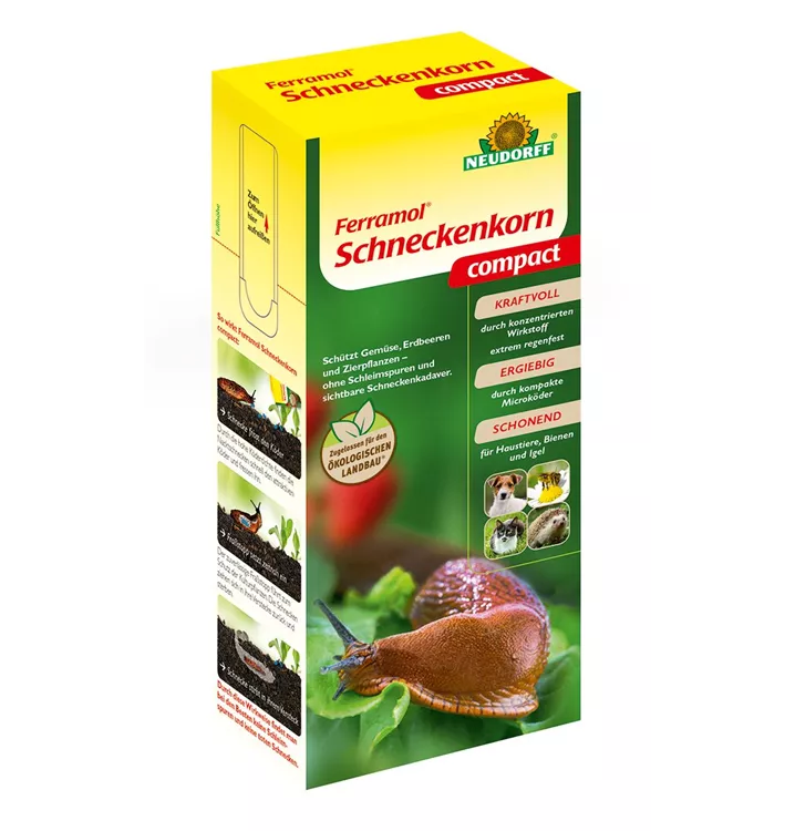 Kraftvoller Kompaktköder zur effektiven Bekämpfung von Nacktschnecken an Gemüse-, Obst- und Zierpflanzen. Besonders effektiv durch konzentrierten Wirkstoff. Durch kleine Körner ideal auch für die Bekämpfung von kleinen Schnecken im Frühjahr. Ohne Schleimspuren und sichtbare Schneckenkadaver. Zugelassen für den ökologischen Landbau (gem. EG-Öko-Verordnung). Schonend für Bienen (in D: NB 6641), Haustiere, Igel und andere Nützlinge. Keine Wartezeit bis zur Ernte bei Obst und Gemüse.