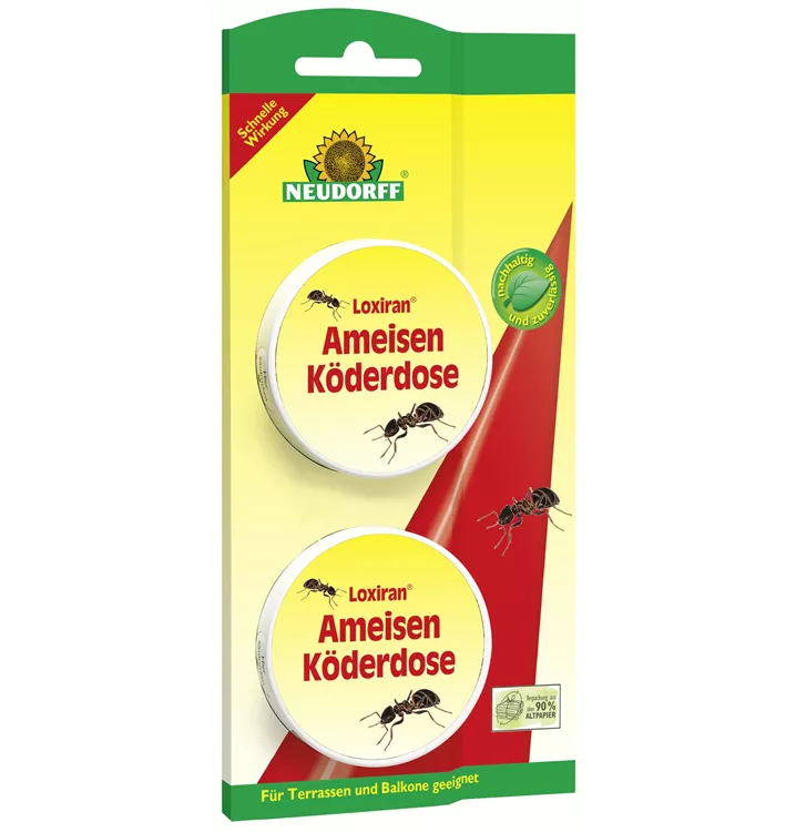 Gebrauchsfertige Köderdose mit natürlichem Wirkstoff zur zuverlässigen Bekämpfung von Ameisen. Ideal für den Einsatz auf Terrasse, Balkonen, Wegen sowie in Wohnräumen. Ohne synthetische Wirkstoffe.