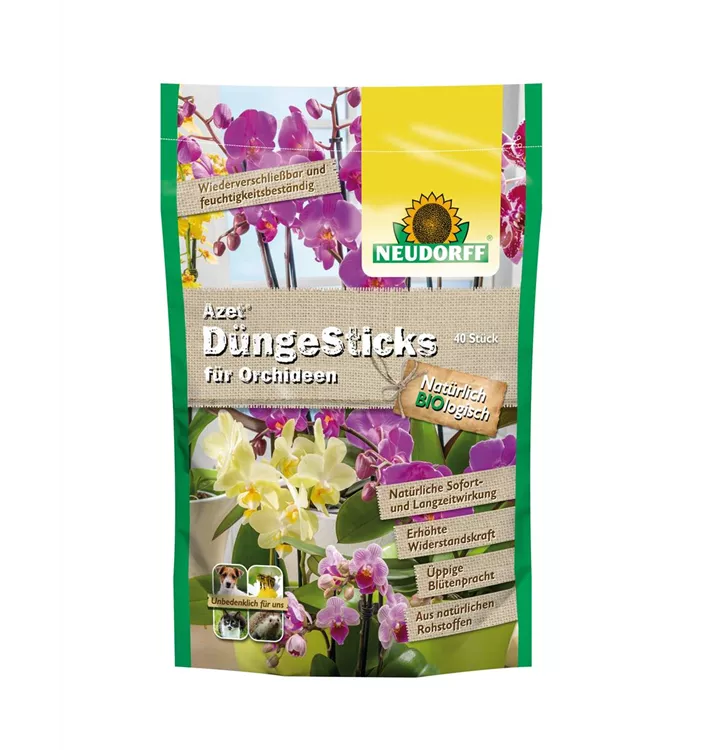 Organischer NPK-Dünger 8-2-5 aus natürlichen Rohstoffen für Orchideen. Mit natürlicher Langzeitwirkung. Enthält bodenbelebende Mikroorganismen und MyccoVital® (Mykorrhiza) für kräftiges, gesundes Pflanzenwachstum. Einfache Handhabung durch die Stick-Form. Der Standbodenbeutel ist wiederverschließbar und feuchtigkeitsbeständig.