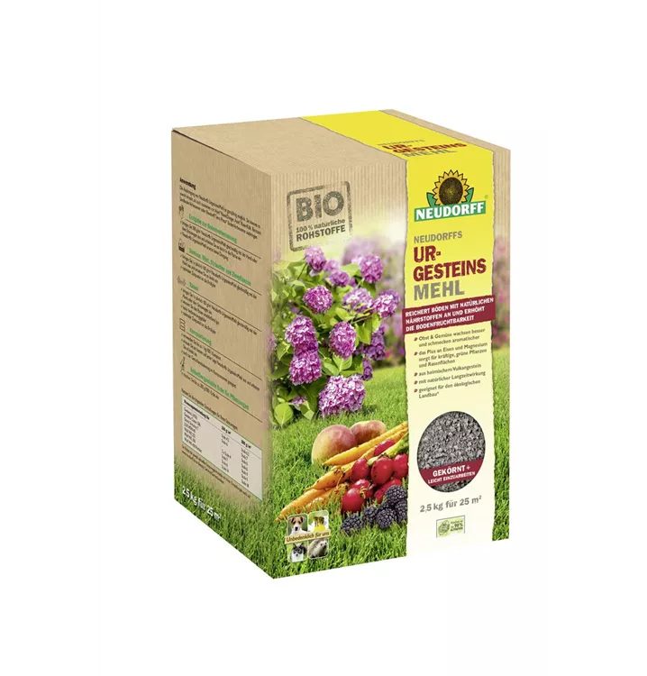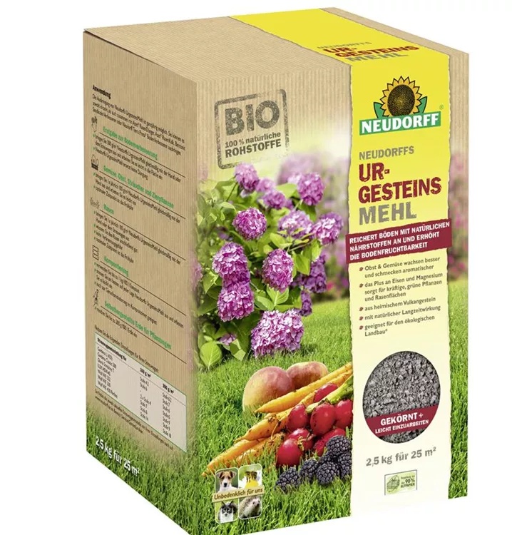 Bodenhilfsstoff hergestellt unter Verwendung von Diabasgesteinsmehl. Zur Wiederanreicherung des Bodens mit Mineralsubstanz und Spurenelementen. Besonders gut geeignet für Moorbeetpflanzen und Immergrüne.