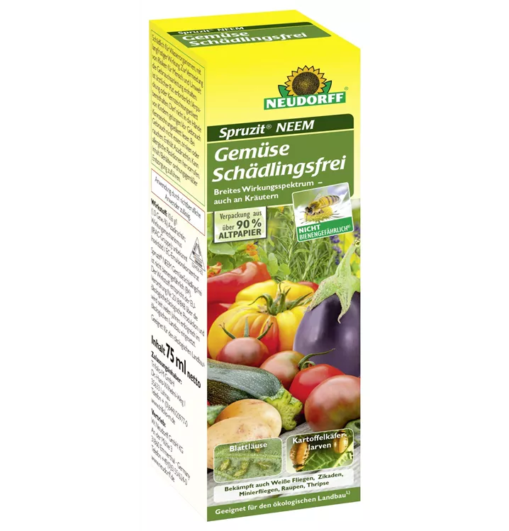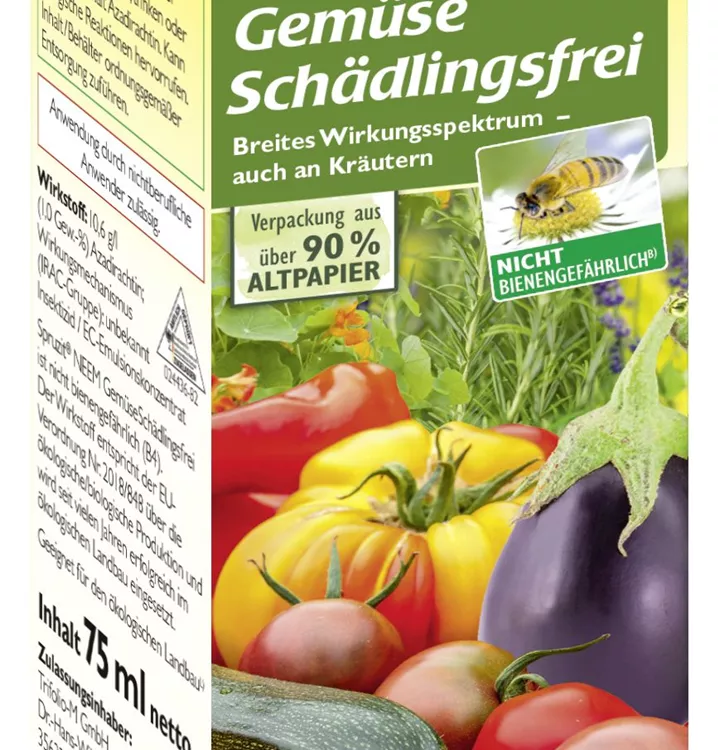 Der natürliche Wirkstoff aus den Kernen des Neem-Baums stört die Entwicklung der Schädlinge, so dass sich keine weiteren Nachkommen entwickeln. Er wirkt gegen viele Insektenarten an Ihren Gemüsepflanzen.