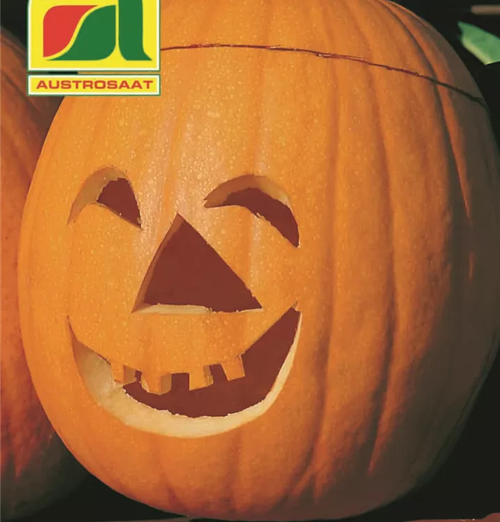 Idealer Halloween-Kürbis, der aufgrund der sehr harten Rinde zum Aushölen für Laternen geeignet ist.