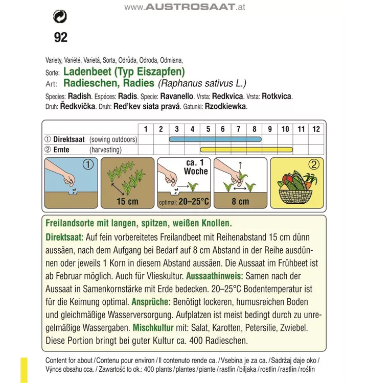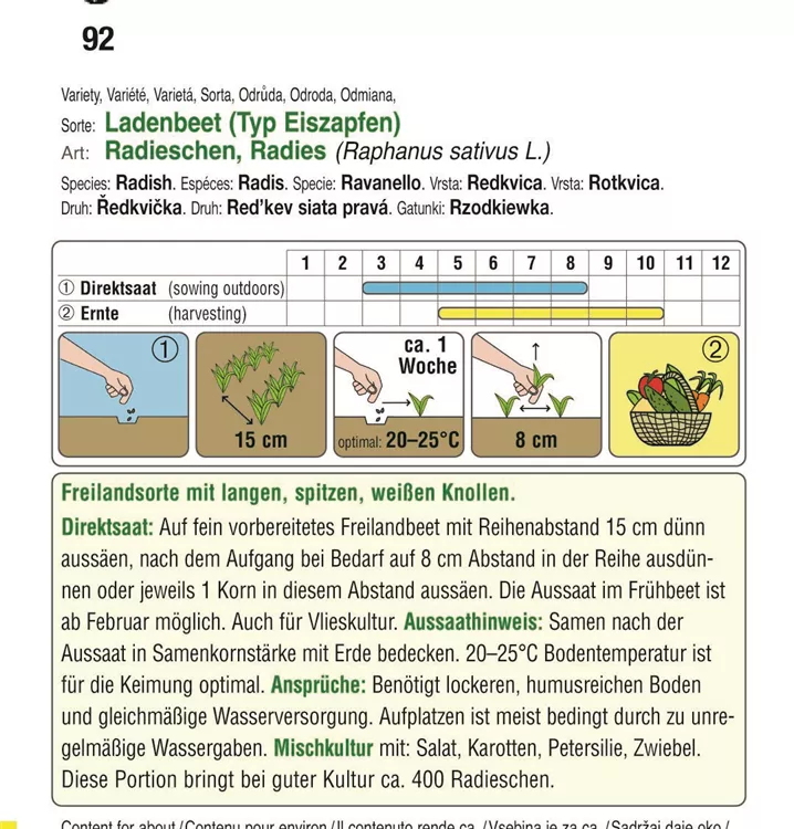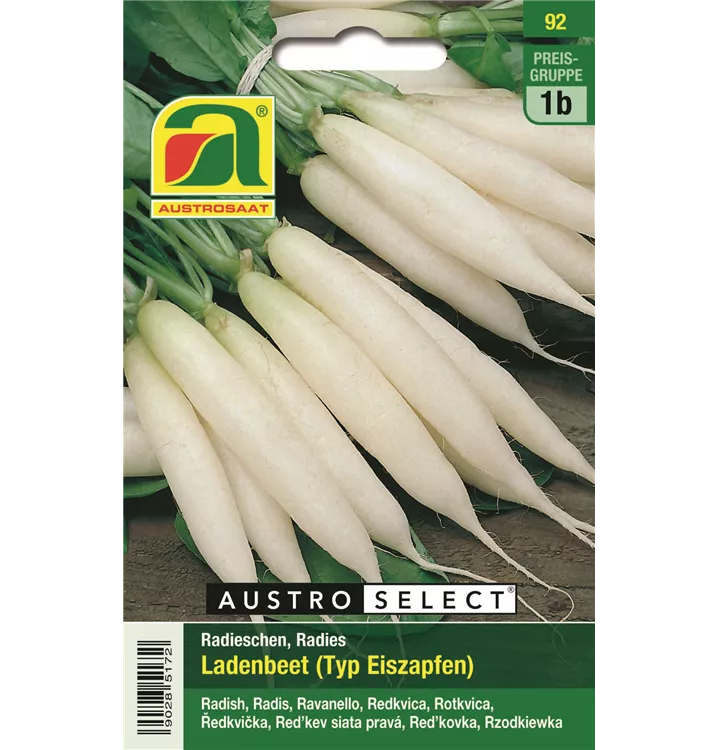 Freilandsorte mit langen, spitzen, weißen Knollen