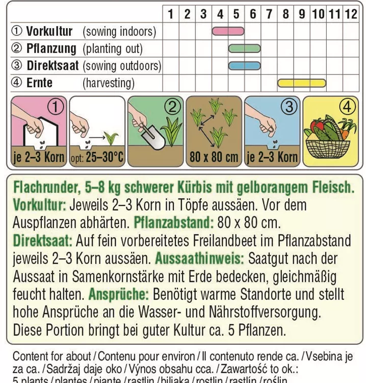 Flachrunder, 5-8 kg schwerer Kürbis mit gelborangem Fleisch.