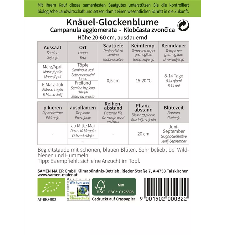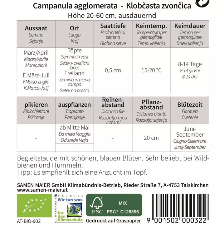 Begleitstaude mit schönen, blauen Blüten. Sehr beliebt bei Wildbienen und Hummeln. Tipp: Es empfiehlt sich eine Anzucht im Topf.