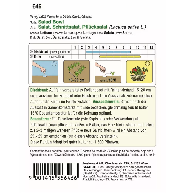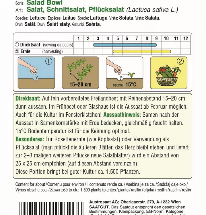 Ein schnellwüchsiger Schnitt- oder Pflücksalat mit eichblattförmigen, zarten Blättern in hellgrün und lockerem Kopf.