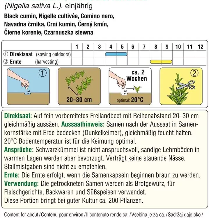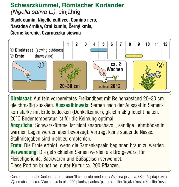 Bildet ab Juli dekorative Blüten mit aromatischen, nussig, leicht süßlich schmeckenden Samen. Die Blüten sind äußerst nektarreich bieten somit auch vielen Nützlingen Nahrung.