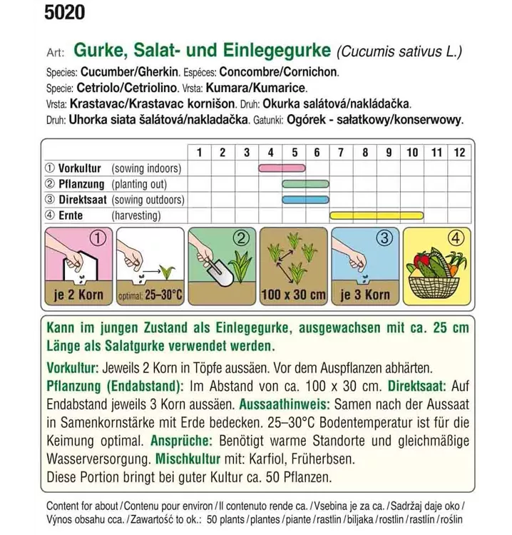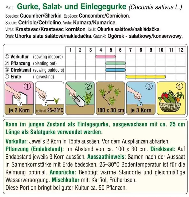 Kann im jungen Zustand als Einlegegurke, ausgewachsen mit ca. 25 cm Länge als Salatgurke verwendet werden.