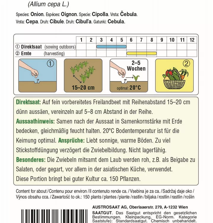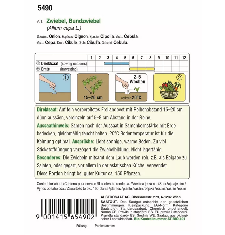 Ein Bundzwiebel mit mildem Aroma. Er bildet im Erntestadium hochrunde weiße Zwiebeln aus.