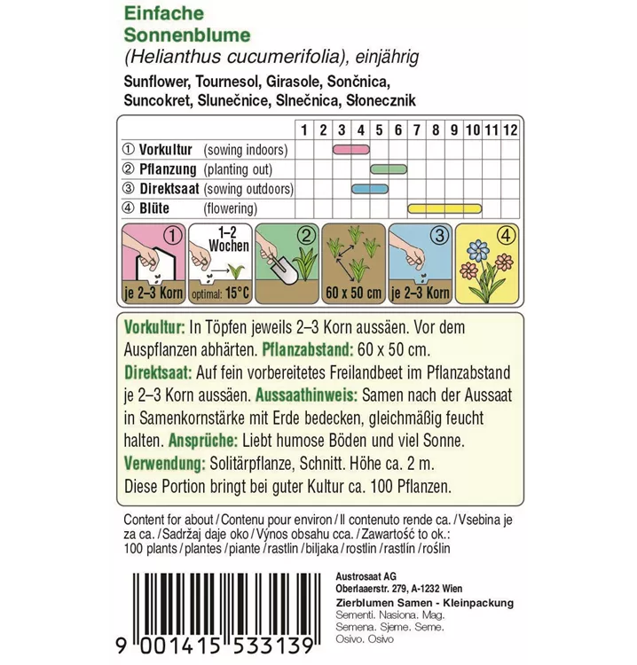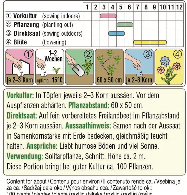 Sonnenblumen Einfache Mischungwachsen bis zu 2 m hoch und bilden große Blütenköpfe. Sie lieben humose Böden und viel Sonne.