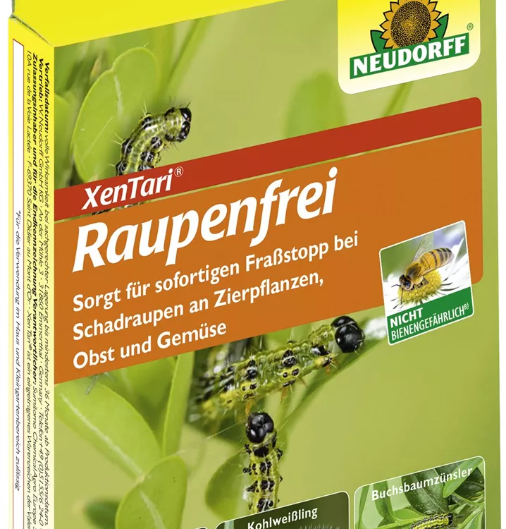 Raupenfrei Xentari -Pfl.Reg.Nr.: 3431 Pflanzenschutzmittel vorsichtig verwenden. Vor Verwendung stets Etikett und Produktinformationen lesen. Warnhinweise und -symbole in der Gebrauchsanleitung beachten.