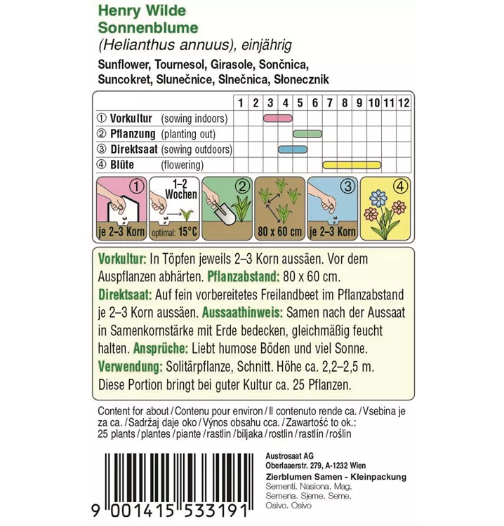 Eine Solitärsommerblume mit einer beeindruckenden Höhe von über 2 m. Die großen Blütenköpfen bestehen aus einer schwarzen Scheibe und langen goldfarbenen Blütenblättern.