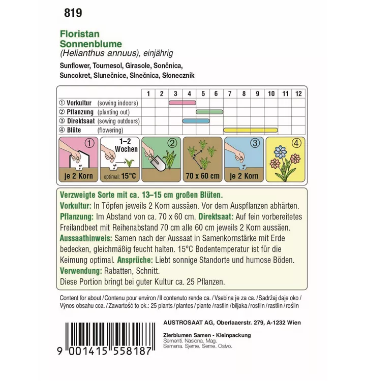 Verzweigte Sorte mit ca. 13-15 cm großen Blüten.