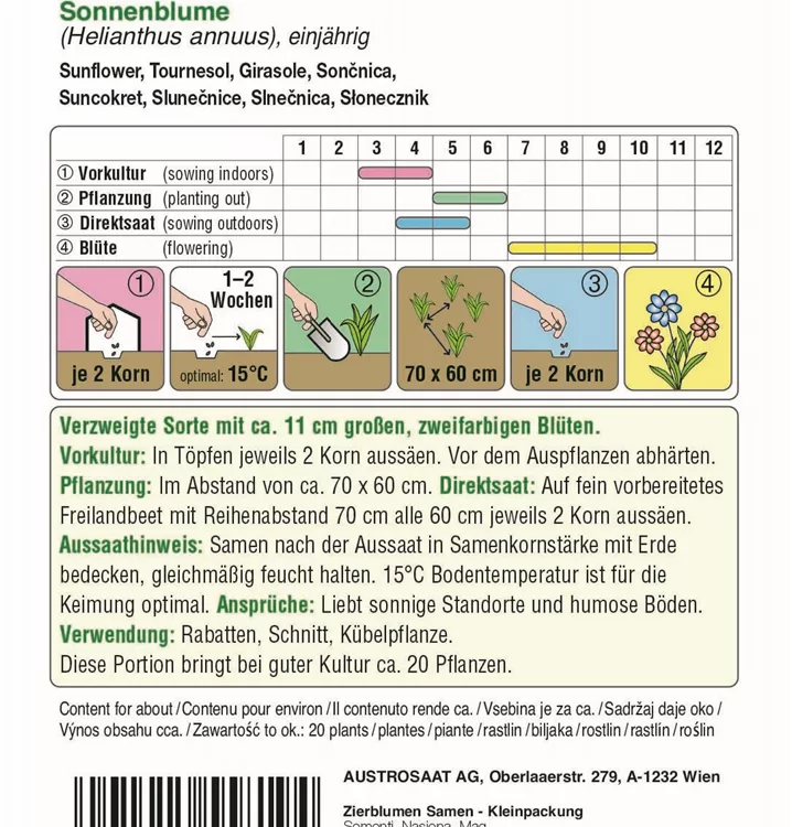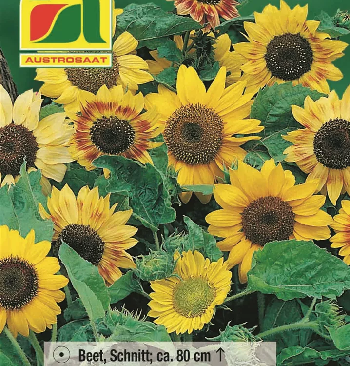 Verzweigte Sorte mit ca. 11 cm großen, zweifarbigen Blüten.