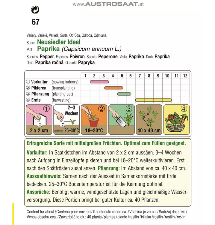 Ertragreiche Sorte mit mittelgroßen Früchten. Optimal zum Füllen geeignet.
