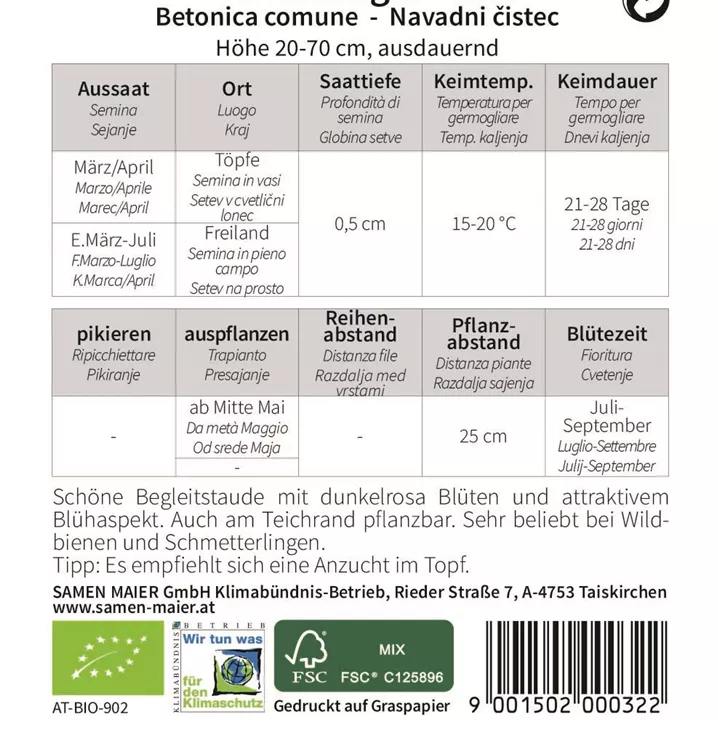 Schöne Begleitstaude mit dunkelrosa Blüten und attraktivem Blühaspekt. Auch am Teichrand pflanzbar. Sehr beliebt bei Wildbienen und Schmetterlingen. Tipp: Es empfiehlt sich eine Anzucht im Topf.