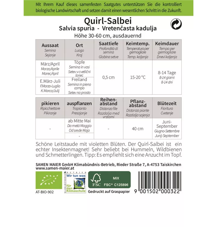 Schöne Leitstaude mit violetten Blüten. Der Quirl-Salbei ist ein echter Insektenmagnet! Sehr beliebt bei Hummeln, Wildbienen und Schmetterlingen. Tipp: Es empfiehlt sich eine Anzucht im Topf.