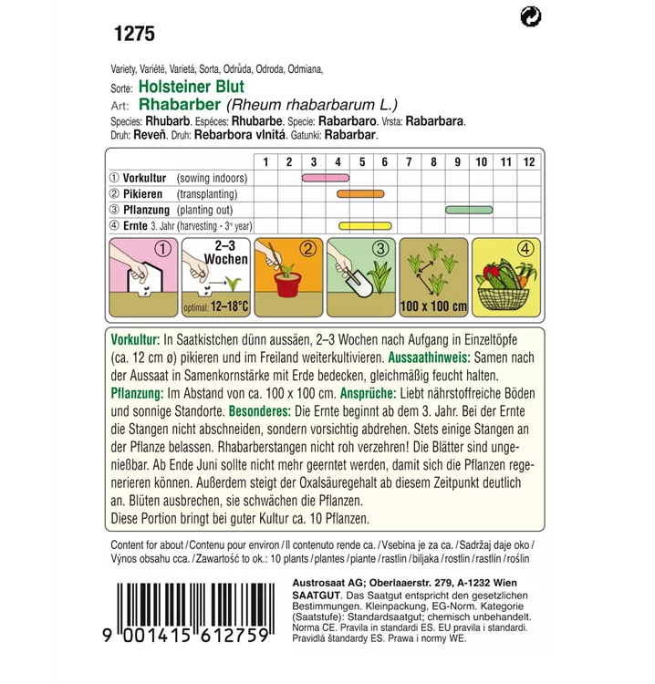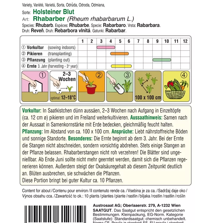Ein Stielgemüse aus der Familie der Knöterichgewächse. Das vitaminreiche Fruchtfleisch besitzt einen milden, leicht säuerlichen Geschmack. Die staudenartige Pflanze wirft ihr Laub ab und zieht sich über die Winterzeit in ihre Wurzel zurück. Für Zubereitung von Konfitüren und Kompott.