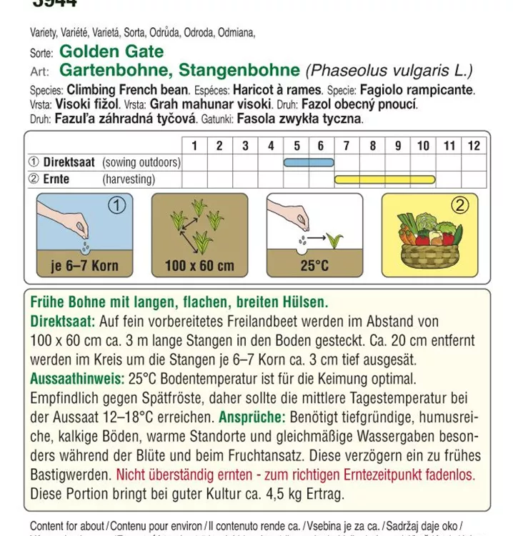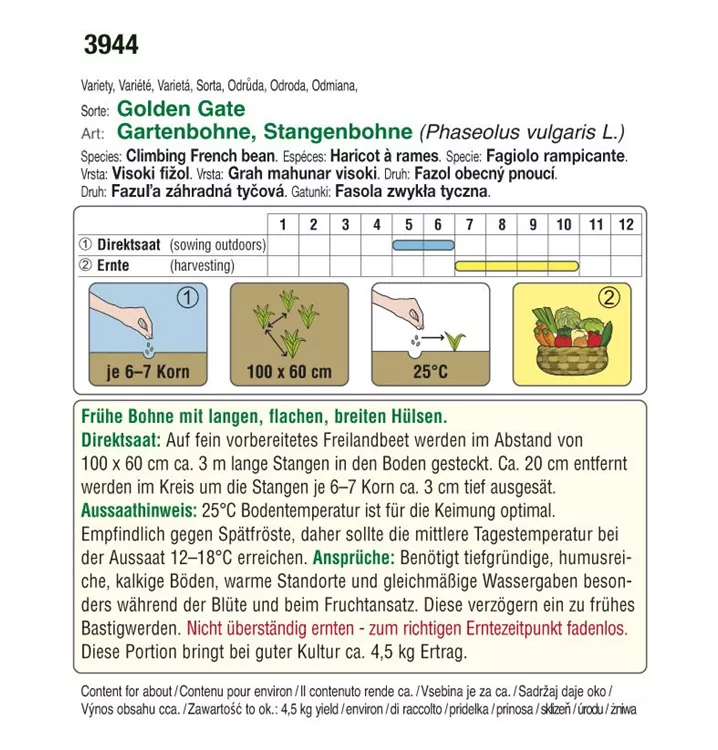 Frühe Bohne mit langen, flachen, breiten Hülsen.