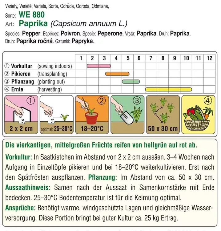Die vierkantigen, mittelgroßen Früchte reifen von hellgrün auf rot ab.