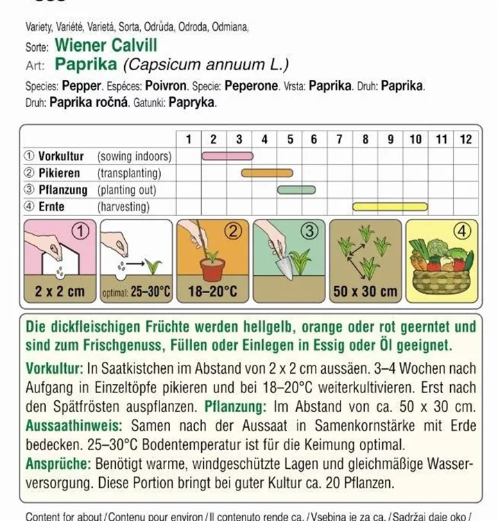 Die apfelförmigen, pikant schmeckenden Früchte werden wachsgelb geerntet und sind zum Frischgenuß oder Einlegen (mit Kraut gefüllt) geeignet.