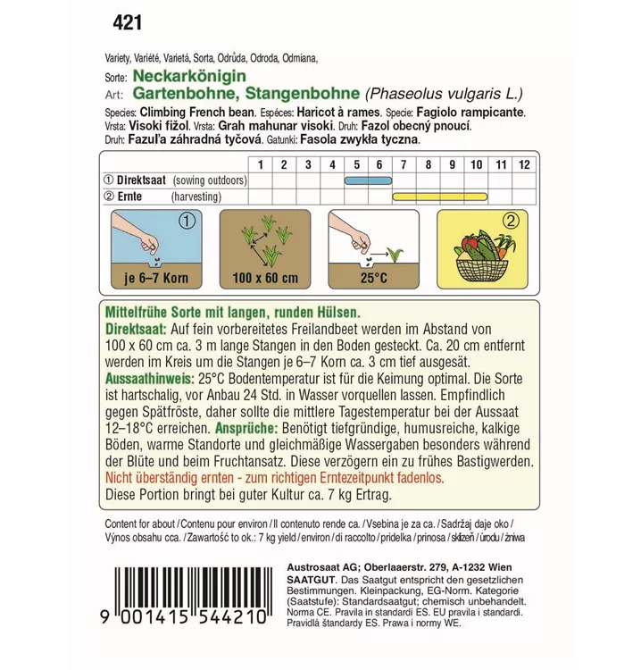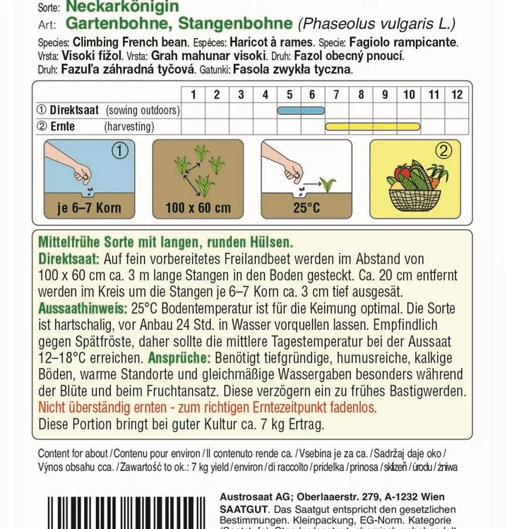 Mittelfrühe Sorte mit langen, runden Hülsen