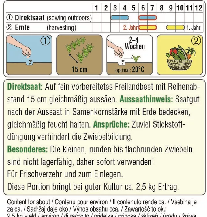 Eine kleine, silberweiße, runde Zwiebel (Perlzwiebel) mit mildem Geschmack. Sie eignet sich zum Einlegen und für den Frischverzehr.