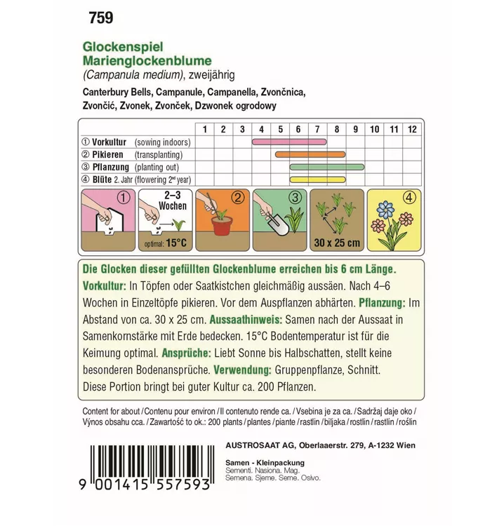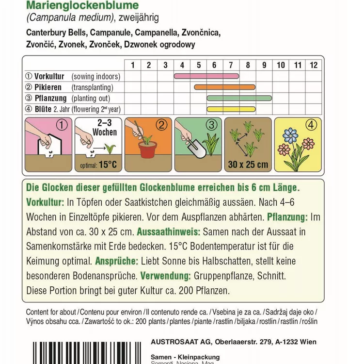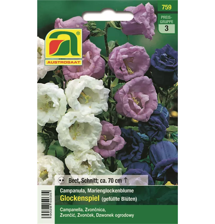 Die Glocken dieser gefüllten Glockenblume erreichen bis 6 cm Länge.
