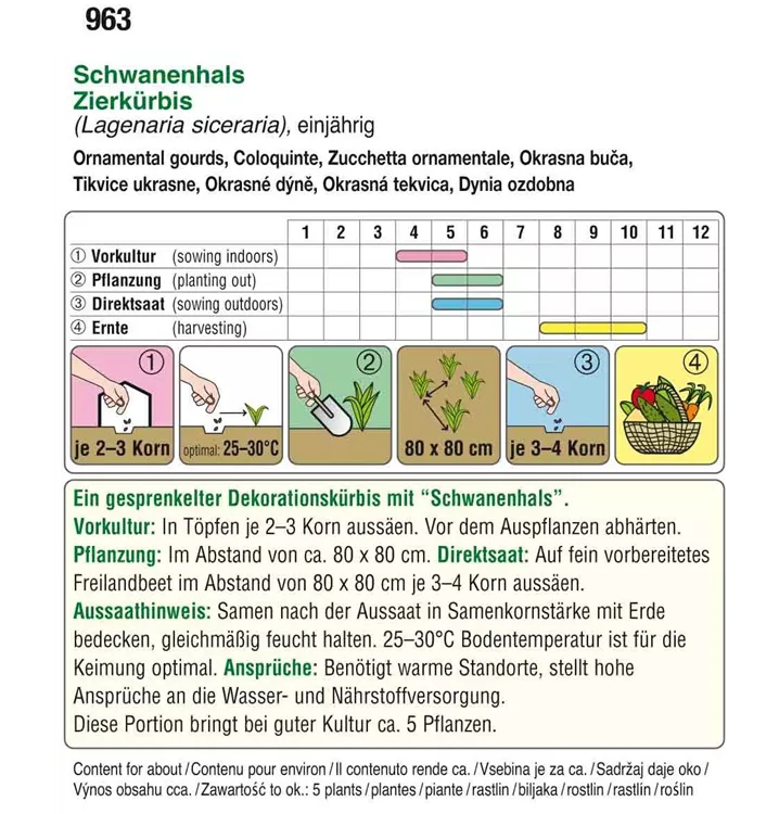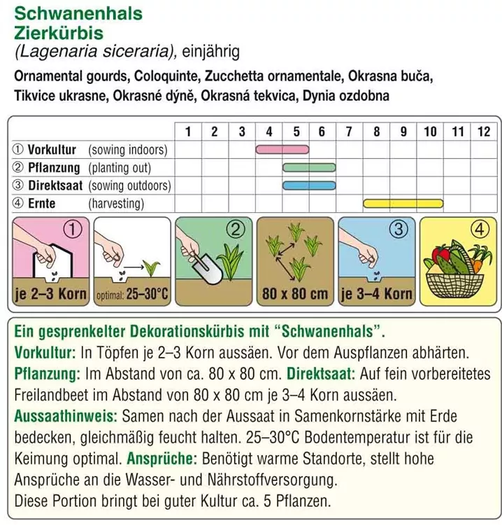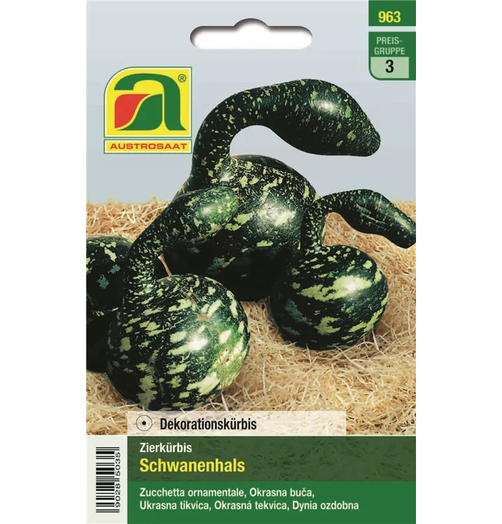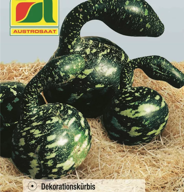 Ein gesprenktelter Dekorationskürbis mit "Schwanenhals".