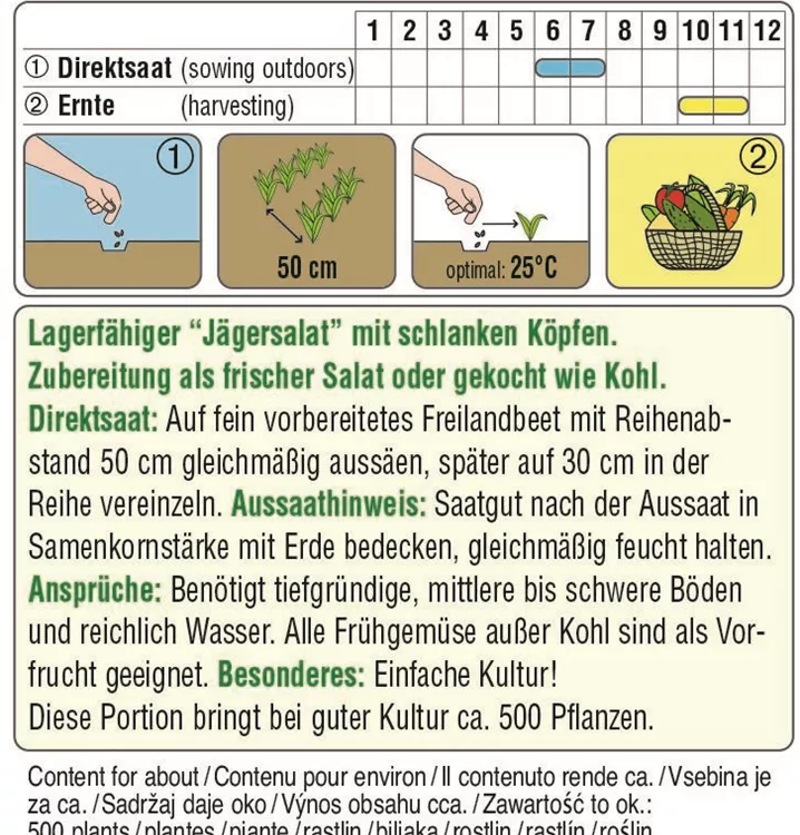 Lagerfähiger "Jägersalat" mit schlanken Köpfen. Zubereitung als frischer Salat oder gekocht wie Kohl.