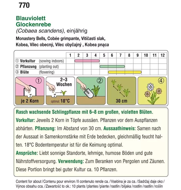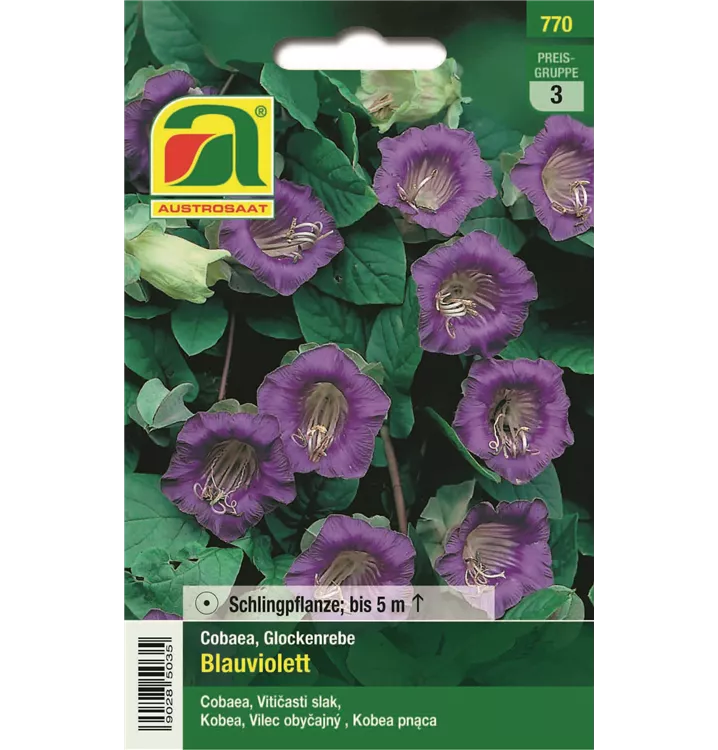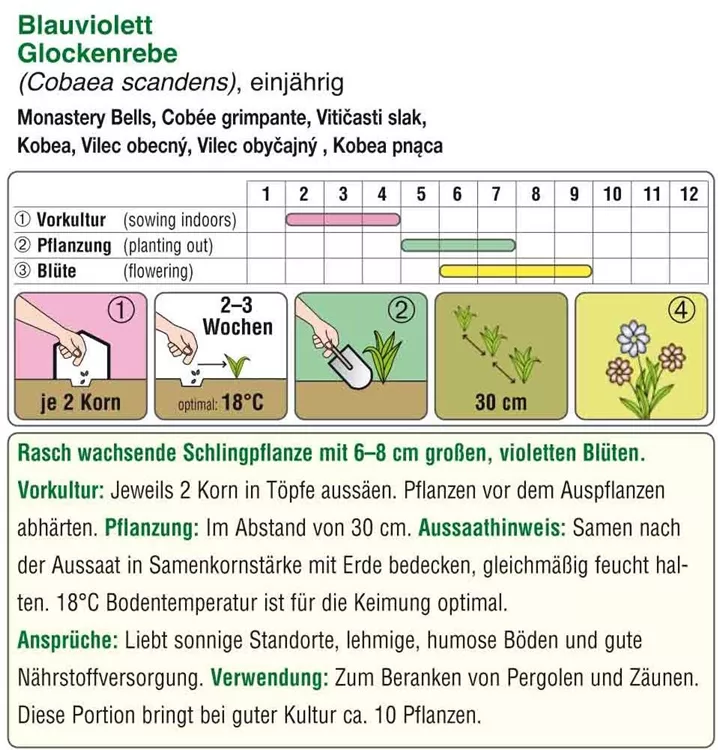 Rasch wachsende Schlingpflanze mit 6-8 cm großen, violetten Blüten.