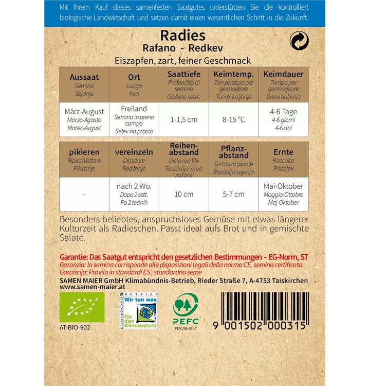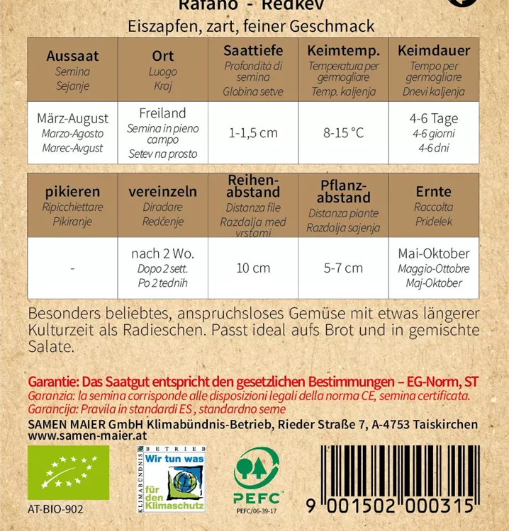 Besonders beliebtes, anspruchsloses Gemüse mit etwas längerer Kulturzeit als Radieschen. Passt ideal aufs Brot und in gemischte Salate.