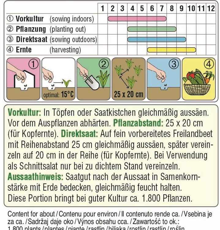 Ein schnellwüchsiger Pflücksalat mit rotbraunen Blatträndern. Die Kultur kann auch im Balkonkasten erfolgen.