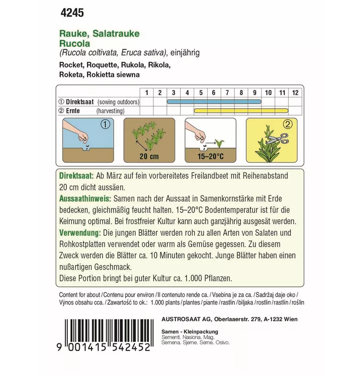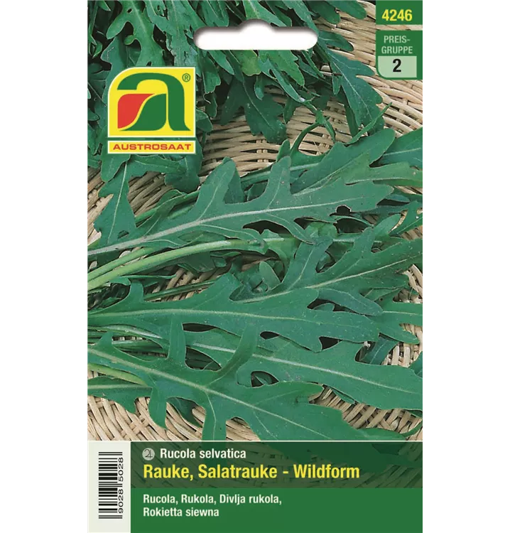 Eine ausdauernde Rauke (Rucola) mit stark gezahnten Blättern und intensivem, nussartigem Geschmack.