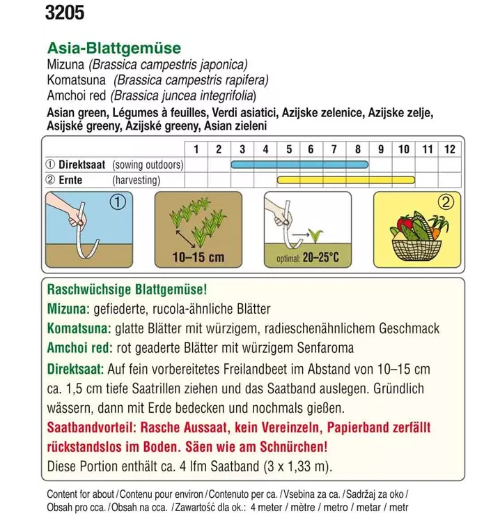 Saatband Asia Blattgemüse