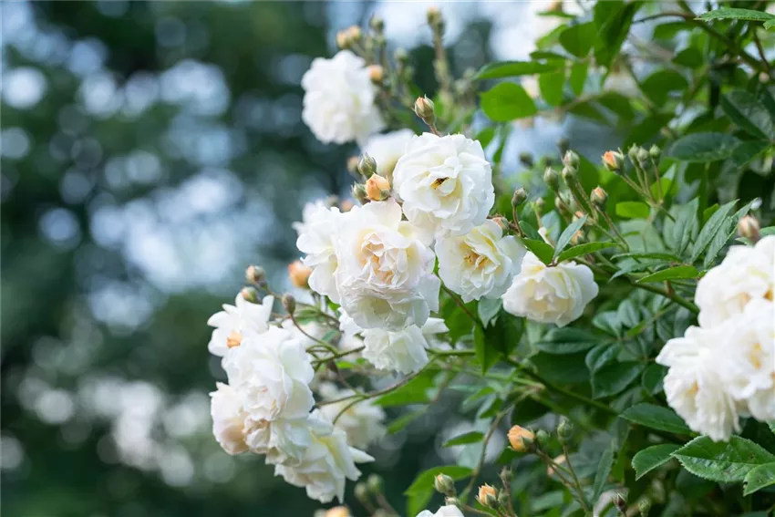 Kletterrosen Nicht nur bei Pflanzen, auch generell haben bestimmte Farben eine bestimmte Wirkung. Blau wirkt beruhigend, Rot wirkt kraftvoll und Gelb heitert die Stimmung auf. Und wie jede Farbe eine bestimmte Wirkung hat, so braucht sie auch immer einen Gegenpart, der einen harmonischen Ausgleich herstellt. Weiß braucht diesen Gegenpart nicht. Weiß steht für Harmonie und wirkt beruhigender als alle anderen Farbkombinationen. Da trifft es sich besonders gut, dass eine Vielzahl der Pflanzen, die gerne im Garten gepflanzt werden, im ursprünglichen Wachstum weiß blühen und dann in anderen Farben nachgezüchtet werden. Ein weißes Beet ist also nicht nur hübsch und duftet gut, es ist auch leichter anzulegen als gedacht. Die Tatsache, dass die Natur so vielfältig ist, bedeutet auch, dass jede Jahreszeit weiße Blüten zu bieten hat, die sich perfekt kombinieren lassen, wenn man seinen Garten ganz in Weiß halten will. Egal ob große oder kleine Blüten, zierliche oder pompöse Blüten, es gibt nichts, das es in der Botanik nicht gibt. Passend dazu treten die verschiedenen Grüntöne der Blätter auf, die das Gesamtbild abrunden.